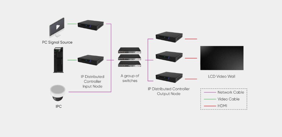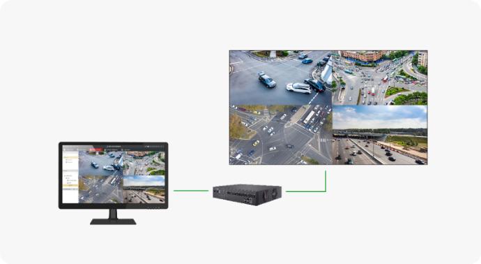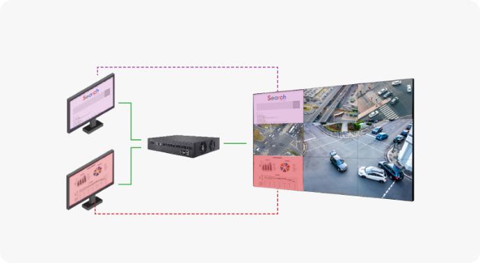 Los operadores pueden proyectar hasta dos PCs en la pared de video utilizando las interfaces de entrada del decodificador, mejorando la capacidad de expansión del sistema. Esto permite un control total sobre múltiples fuentes de información, optimizando el monitoreo. ¡No pierdas la oportunidad de maximizar tu espacio de monitoreo! Contáctanos para conocer más sobre nuestras opciones.