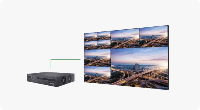 Con el decodificador de Hikvision, los operadores disfrutan de una administración flexible de muros de video, con capacidad para dividir hasta 6 x 6 ventanas. Sus características avanzadas, como la división de ventanas, empalme y roaming, permiten personalizar la visualización para cada necesidad, mejorando la eficiencia en la toma de decisiones.