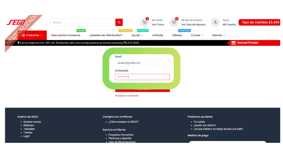 Tienes 2 formas de cambiar el tipo de moneda (Soles o Dolares) en nuestra página web www.sego.com.pe