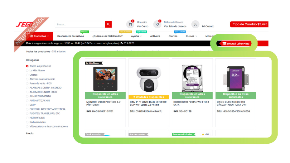 Ahora podremos visualizar todos los productos disponibles en la Sucursal Cyberplaza, junto con el stock correspondiente de cada uno.