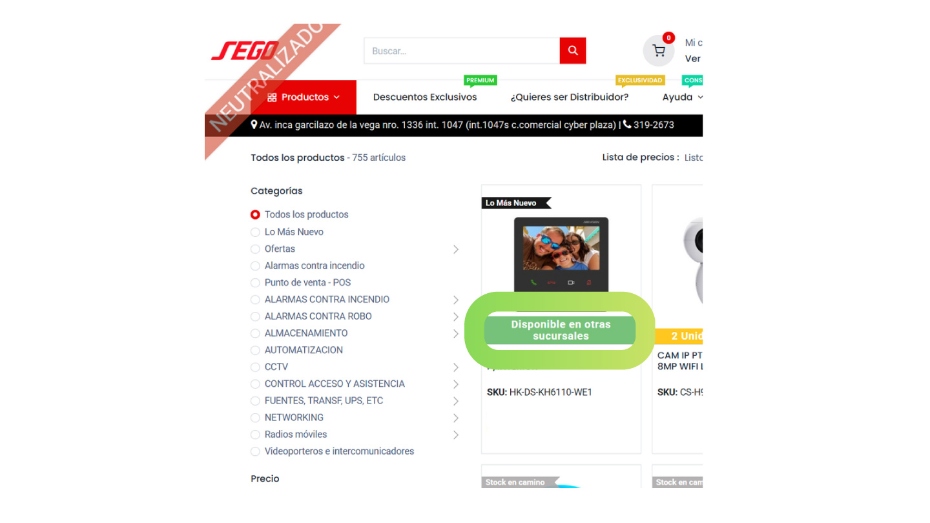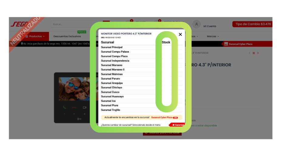 El sistema nos mostrará en qué sucursales hay disponibilidad de ese producto.
