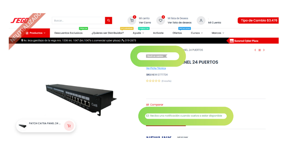 En este caso, podemos dejar nuestro correo electrónico haciendo clic en la opción “Reciba una notificación cuando vuelva a estar disponible”, para que el sistema nos avise automáticamente cuando el producto esté nuevamente en stock.