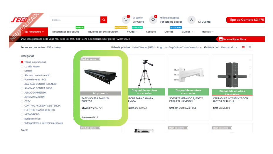 Sigamos navegando. Cuando encontremos una franja con la leyenda “Muy pronto” y la etiqueta “Stock en camino”, esto significará que actualmente no hay disponibilidad del producto en ninguna de nuestras sucursales, pero que muy pronto estará disponible.