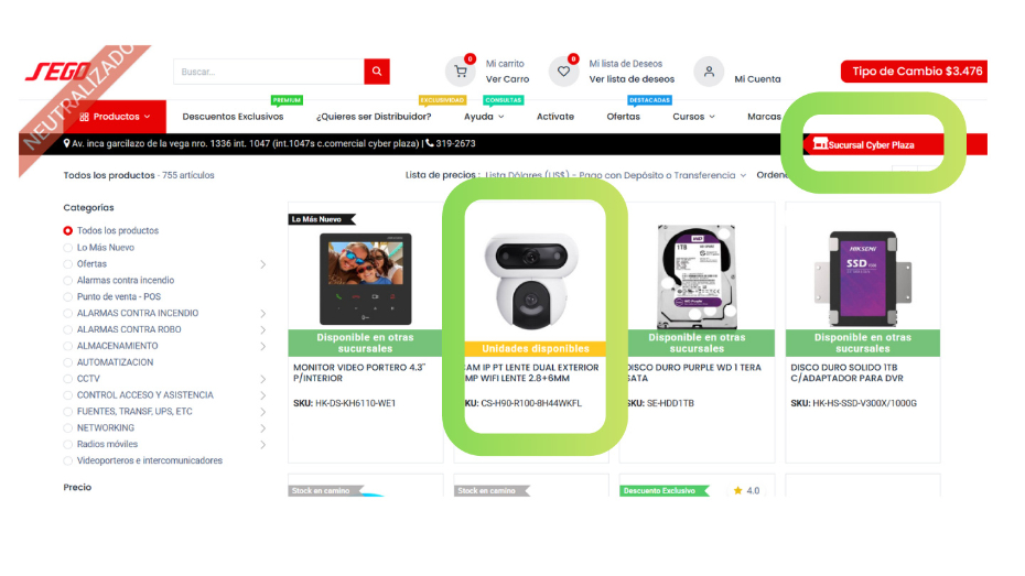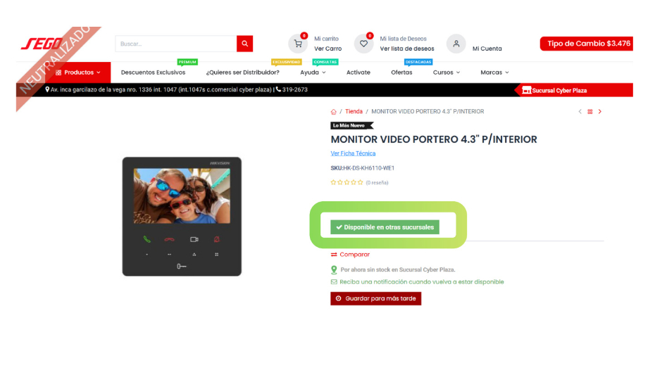Si deseamos adquirir la H90, simplemente debemos cambiar a alguna de las sucursales que cuenten con el stock disponible, y listo, podremos realizar la compra.