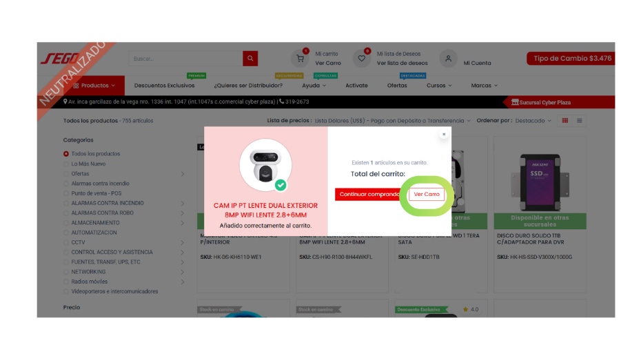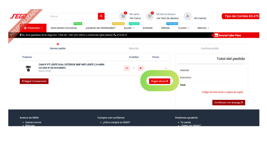 Continuando con nuestra compra desde la Sucursal Cyberplaza, realizaremos los siguientes pasos: